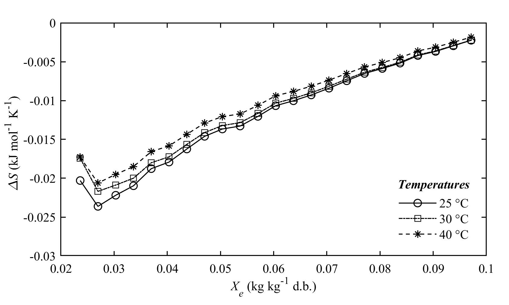 TEIXEIRA, P. L.; T. DE ANDRADE, E.; DEVILLA, A. I. Isosteric heat, entropy, and gibbs free energy of pumpkin seeds (Cucurbita moschata). Engenharia Agrícola, 2018. DOI: http://dx.doi.org/10.1590/1809-4430-eng.agric.v38n1p97-102/2018