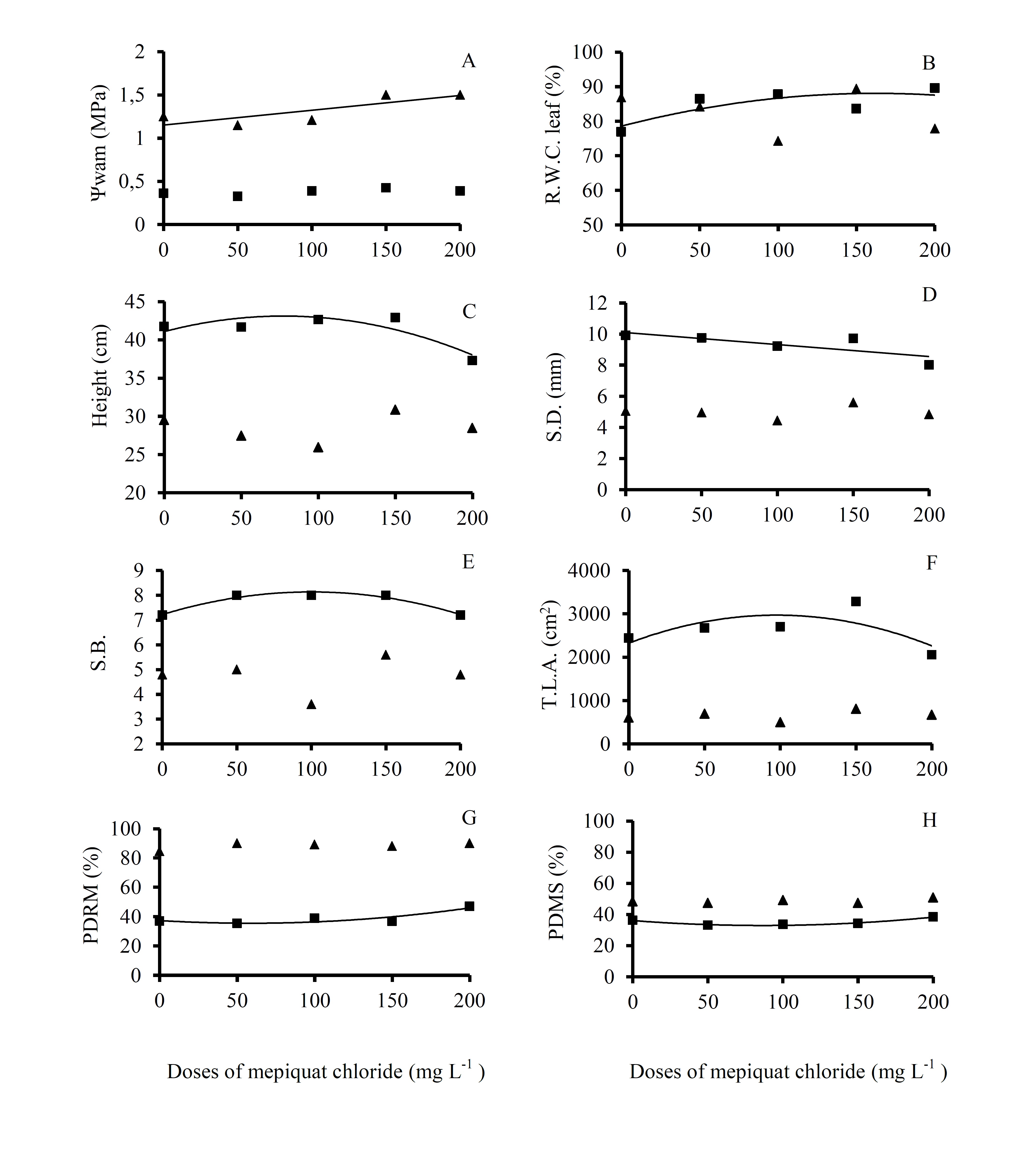 AHMED, M. A. AHMED, M. K. A., SHALABY, M. A. F. Alleviation of water stress effects on wheat by mepiquat chloride. International Journal of Agriculture and Biology, [S.l.], v.7, n.3, p. 451-456. 2005.