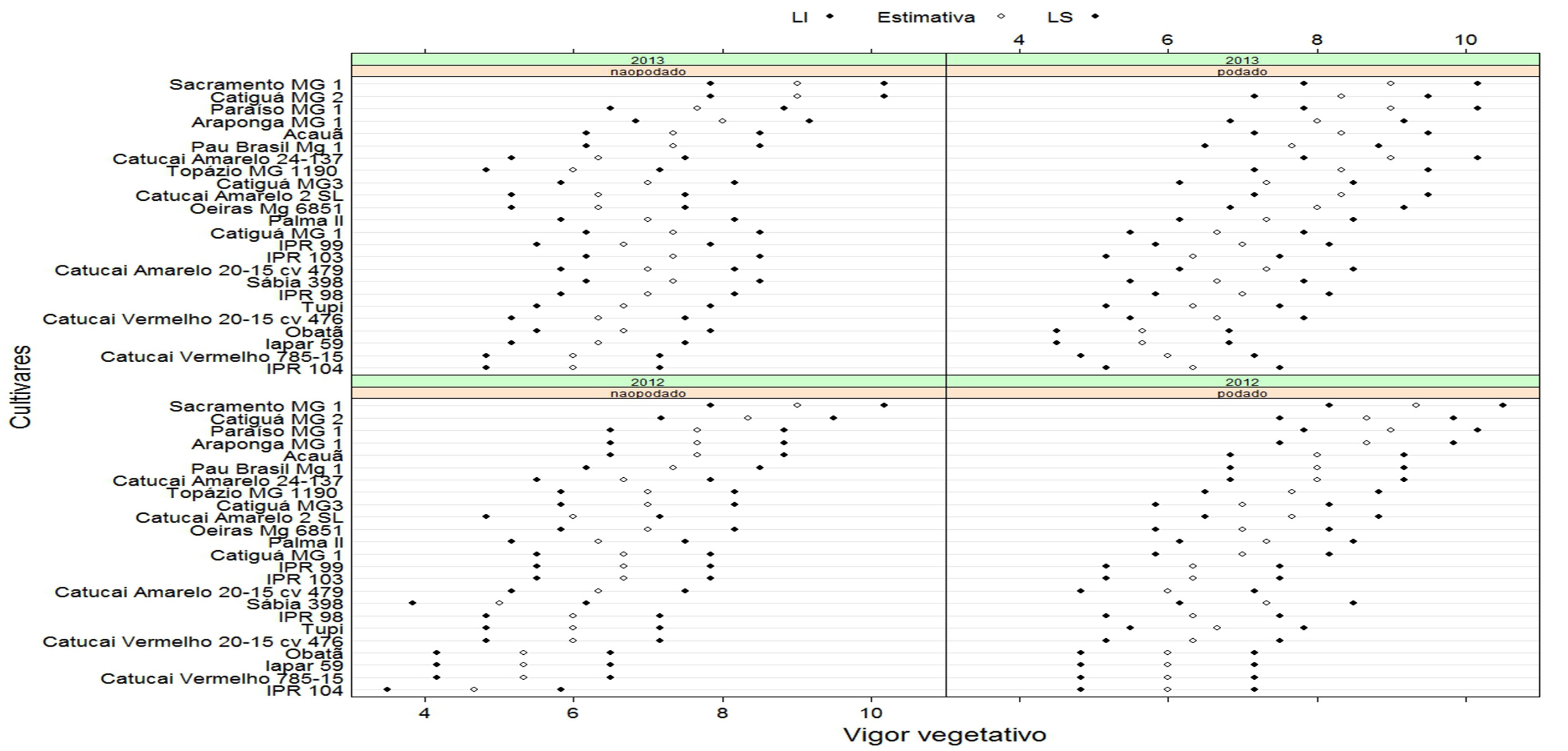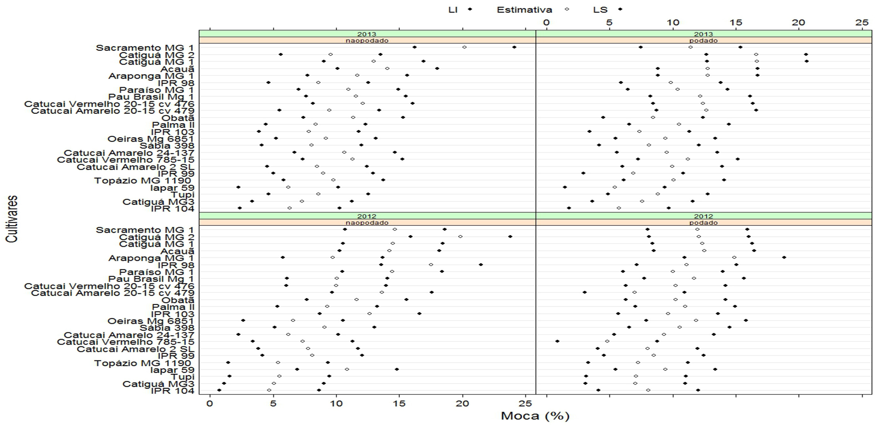 Carvalho, G. R. et al. Comportamento de progênies f4 de cafeeiros arábica, antes e após a poda tipo esqueletamento. Coffee Science, Lavras, v. 8, n. 1, p. 33-42, jan./mar. 2013